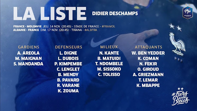 The world champions are back, after missing out on the September and October challenges, Kylian Mbappe, but Paul Pogba remains out because of physical problems.